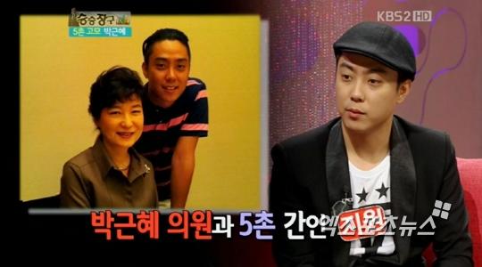 [엑스포츠뉴스=방송연예팀 방정훈 기자] 은지원이 5촌 당고모인 국회의원 박근혜에 대해 언급했다.