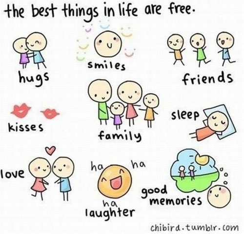 게시물 속 그림은 간단하게 '포옹, 미소, 친구, 키스, 가족, 잠, 사랑, 웃음, 그리고 좋은 기억들'를 표현하고 있으며 이런 가치있는 최고의 것들이 모두 공짜라고 환기시키고 있다.