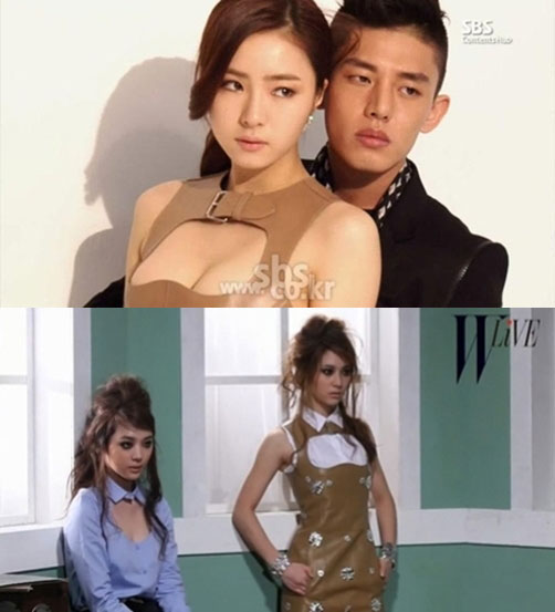 또 다른 사진에서는 잡지 화보 촬영에서는 크리스탈이 같은 옷을 입고 포즈를 취해 신세경과 '같은 옷 다른 느낌'을 나타냈다.