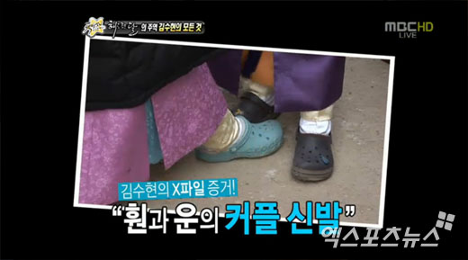 커플 신발을 신거나, 서로 신발을 한 짝씩 바꿔서 신는 등 한시도 떨어지지 않고 둘이 자석처럼 붙어 다녀 촬영장에서 "둘의 정체를 밝혀라"는 말을 듣기도 했다.