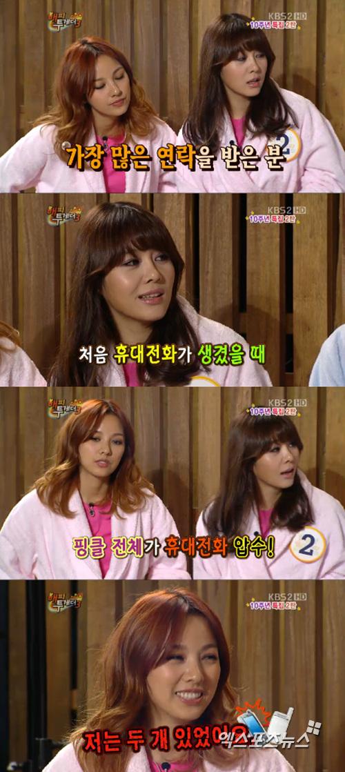 이어 당시 멤버들이 휴대폰을 막 갖게 돼서 들떠 있었는데 이효리에게 너무 많은 남자 연예인들이 전화를 하는 바람에 소속사에서 핑클 멤버 전원의 핸드폰을 빼앗았다고 털어놨다.