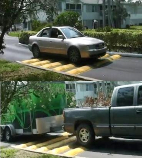 이에 이 방지턱을 지나려면 아무리 빠른 차도 무조건 속도를 낮출 수밖에 없다.