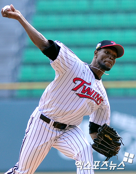 [엑스포츠뉴스=잠실, 권혁재 기자] 17일 오후 잠실야구장에서 열린 '2012 프로야구 시범경기' LG 트윈스와 삼성 라이온즈의 경기에서 9회초 마운드에 오른 LG 리즈가 역투하고 있다.