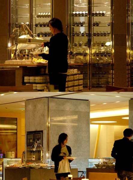 사진 속에는 한 뷔페 레스토랑에서 음식을 고르고 있는 한가인의 모습이 담겨 있다.