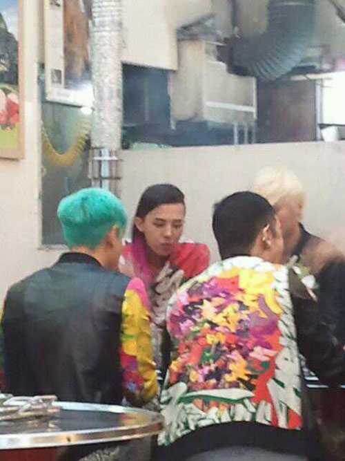 사진 속에는 고기집에서 회식을 하는 듯한 빅뱅 멤버들의 모습이 담겨 있다.