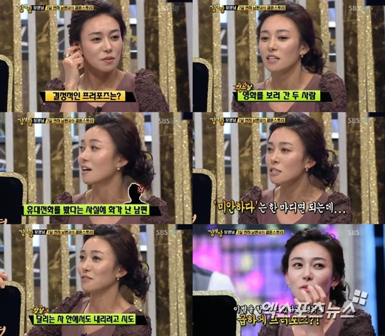 20일 방송된 SBS '강심장'에 출연한 장영남은 7살 연하 남편과의 러브 스토리를 이야기하며 현재 남편과의 혈투 도중 프러포즈를 받은 아찔한 사연까지 공개했다.