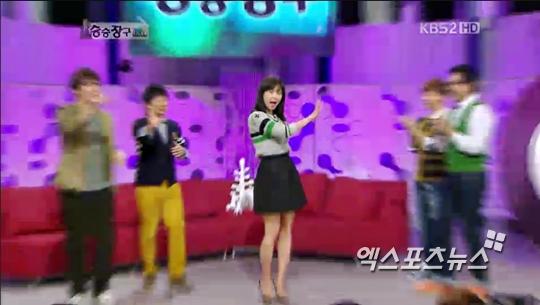 3일 방송된 KBS ‘승승장구'에 출연한 하지원은 왁스가 부른 '오빠'의 춤을 선보였다.