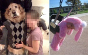 공개한 사진에는 스웨터를 입고 있는 커다란 개가 한 여성과 함께 포즈를 취하고 있는 모습이 담겨 있다.