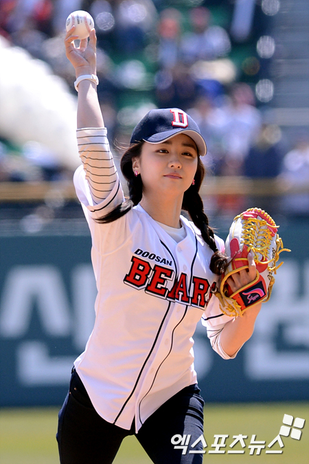 [엑스포츠뉴스=잠실, 권혁재 기자] 7일 오후 잠실야구장에서 열린 '2012 팔도프로야구' 개막식 두산 베어스와 넥센 히어로즈의 경기에 앞서 배우 박하선이 시구를 하고 있다.
