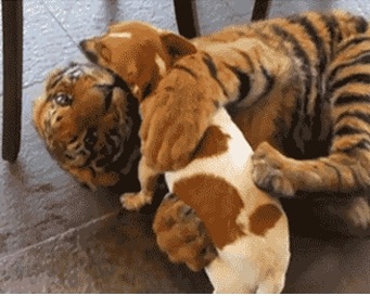 최근 각종 온라인 커뮤니티 게시판에는 '전 맛이 없어요'라는 제목으로 게시물이 게재됐다. 해당 게시물에는 호랑이가 강아지를 입으로 물며 장난치는 모습이 담겨 있다.