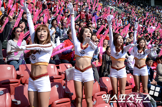 넥센 치어리더들이 열띤 응원전을 펼치고 있다.