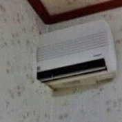 사진 속에는 민박집 벽 구석에 설치된 에어컨의 모습이 담겨 있다.