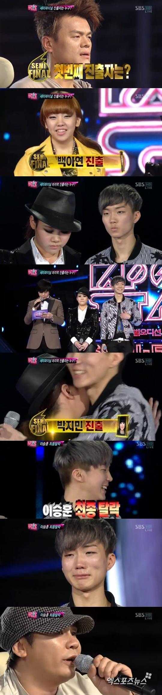 [엑스포츠뉴스 방송연예팀 =임수연 기자] 'K팝 스타' TOP 4 중의 탈락자는 아티스트 이승훈 이였다.