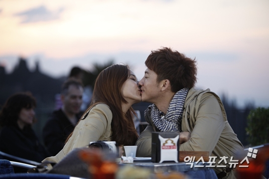 [엑스포츠뉴스=김태연 기자] 기태영-유진이 석양빛에 물든 달콤한 키스장면을 공개했다.