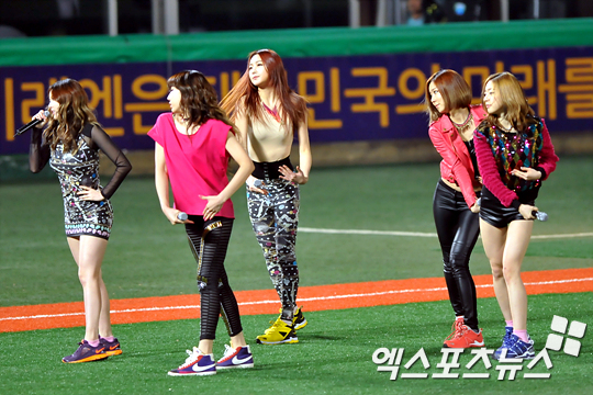 [엑스포츠뉴스=목동, 권혁재 기자] 17일 오후 목동야구장에서 열린 '2012 팔도 프로야구' 넥센 히어로즈와 KIA 타이거즈의 경기에서 달샤벳이 그라운드에서 특별 공연을 펼치고 있다.