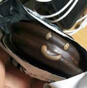 공개된 사진에는 초콜릿으로 만들어진 파이가 활짝 웃고 있는 모습이 담겨 있다. 이 사진을 올린 글쓴이는 "과자 봉지를 뜯자마자 보이는 이 귀여운 얼굴로 인해 귀여워서 먹을 수 없다"라는 말을 덧붙였다.