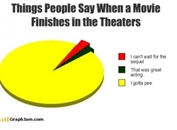 이 글에는 영화 관람 후 가장 많이 하는 말을 원그래프 그림으로 담았다. '영화 끝나자마자 하는 말' 1위는 "나 화장실 들릴래"로 무려 90% 이상 차지하고 있다.