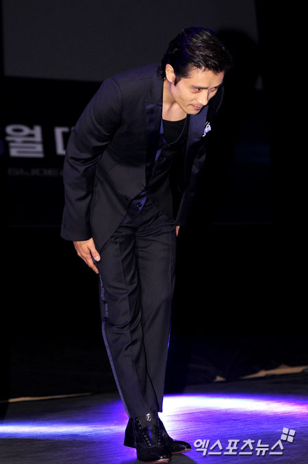 [엑스포츠뉴스 = 권태완 기자] 25일 오전 서울 신사동 압구정CGV에서 열린 '영화 지.아이.조(G.I.Joe)2' 프레스데이 행사에 스톰 쉐도우 역으로 연기한 이병헌이 인사를 하고 있다.