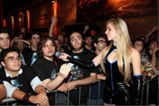 사진 속에는 뛰어난 미모와 몸매를 가진 여자 진행자가 인터뷰를 하고 있다. 그렇지만 게이머들은 미모의 진행자에게는 눈길도 주지 않은 채 게임에만 열중하고 있다.