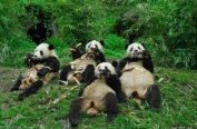 공개한 사진 속에는 풀밭에 누워서 대나무를 먹고 있는 판다 4마리의 모습이 담겨 있다.