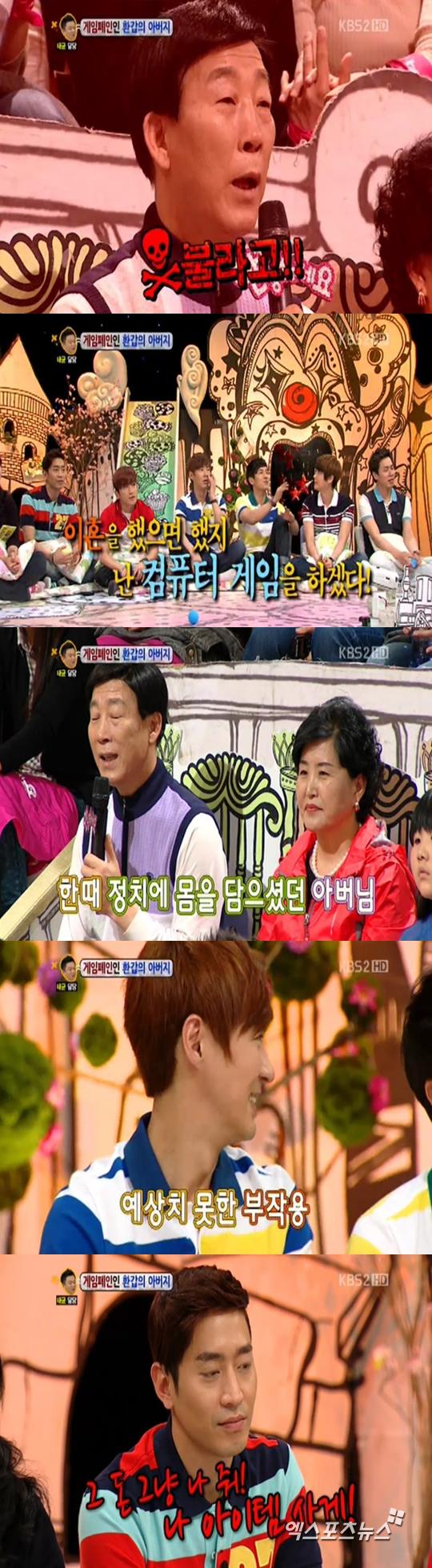 MC들은 아버지에게 게임을 시작하게 된 계기를 물었다. 게임폐인 아버지는 "예전에는 정치를 했었다. 정치에 회의를 느끼니 집에 있게 됐고, 보다 못한 아들이 게임을 추천해줬다"고 밝혔다. 옆에 있던 아들은 "제가 죽일 놈입니다"라며 고개를 숙여 웃음을 자아내게 만들었다.
