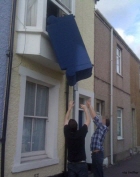 공개된 사진에는 두 외국인들이 2층 창문을 통해 거대한 소파를 받을 준비를 하고 있는 모습이 담겨있다. 특히 소파의 크기가 무시무시함에도 겁 없이 나르려고 하는 모습이 아찔해 보인다.