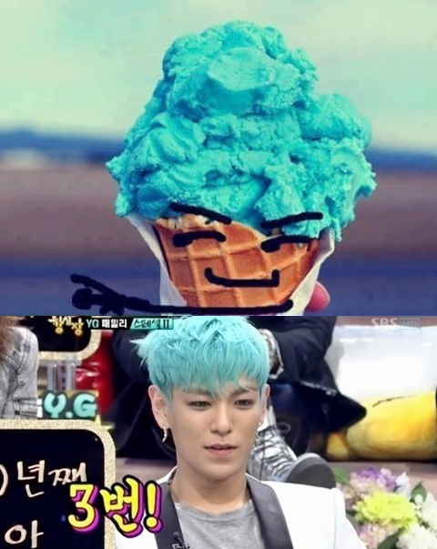 공개된 사진에는 콘 아이스크림과 탑의 머리 스타일을 비교해 웃음을 자아내고 있다. 거기에 아이스크림은 탑 특유의 엉성한 익살맞은 표정까지 그리고 있어 재미를 더하고 있다. 아이스크림은 그야 말로 탑의 도플갱어인 셈이다.