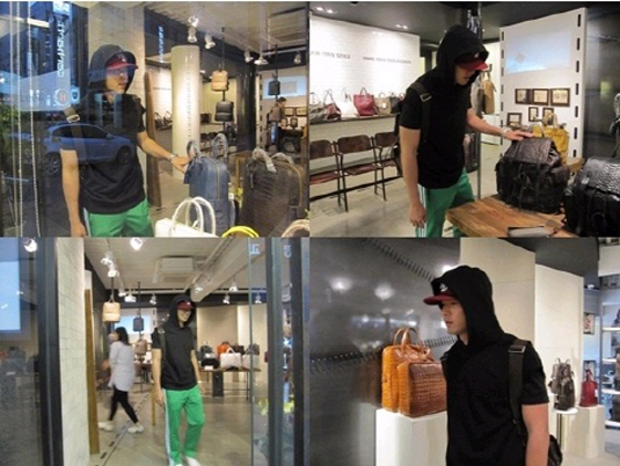 공개된 사진 속 현빈은 초록색 트레이닝 바지에 모자를 눌러 쓴 채 편안한 차림으로 쇼핑에 열중인 모습이다. 현빈은 병영 휴가 중인 것으로 알려졌다.