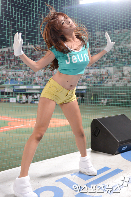 [엑스포츠뉴스=목동, 권혁재 기자] 8일 오후 목동야구장에서 열린 '2012 팔도 프로야구' 넥센 히어로즈와 LG 트윈스의 경기에서 넥센 치어리더가 섹시한 안무를 선보이고 있다.