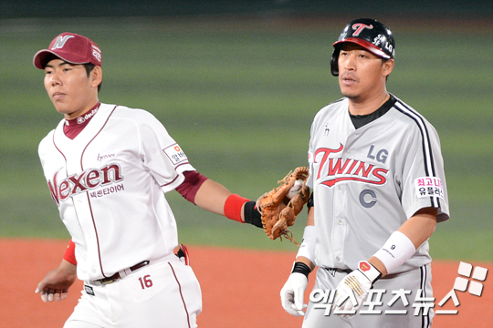 [엑스포츠뉴스=목동, 권혁재 기자] 8일 오후 목동야구장에서 열린 '2012 팔도 프로야구' 넥센 히어로즈와 LG 트윈스의 경기에서 LG가 6-2로 앞선 8회초 2사 2루 우익수 앞 1타점 적시타를 날리고 2루까지 진루를 시도하다 태그아웃 당하고 있다.