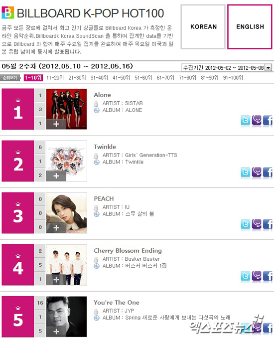[사진 = 빌보드 K팝 차트 캡처]