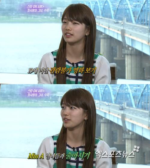 1994년생으로 아직 미성년인 수지는 성인이 되면 뭘 하고 싶으냐는 질문을 받고 "19금 영화 당당하게 보기"라고 솔직하게 대답했다.