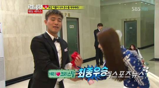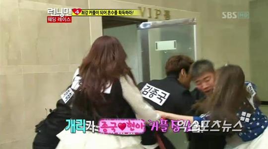 13일 방송된 SBS '일요일이 좋다-런닝맨'에서는 여자 아이돌과 함께하는 웨딩레이스가 펼쳐졌다.