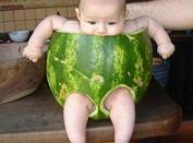 공개된 사진 속 친환경 수영복은 다름 아닌 수박으로, 한 아기가 속을 판 수박에 두 다리를 집어넣고 들어가 있다. 환경도 지키고 아이의 모습이 귀엽기도 네티즌의 눈길을 사로잡고 있다.