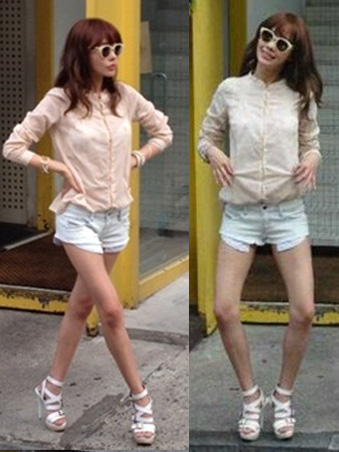 사진 속 김아중은 분홍색 블라우스와 연한 청색의 핫팬츠, 시원해 보이는 샌들을 신고 모델 포즈를 취하고 있다. 특히 큼지막한 선글라스와 늘씬한 다리가 눈길을 끈다. 특히 '개다리춤'을 추며 장난스런 포즈를 지어 보는 이들의 웃음을 자아냈다.