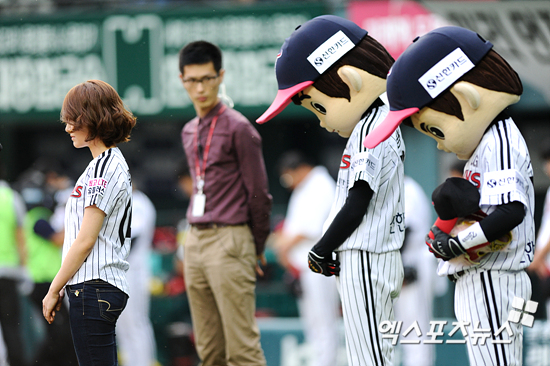 [엑스포츠뉴스=잠실, 권혁재 기자] 1일 오후 잠실야구장에서 열린 '2012 팔도 프로야구' LG 트윈스와 한화 이글스의 경기에 앞서 보훈의 달을 맞아 묵념을 하고 있다.
