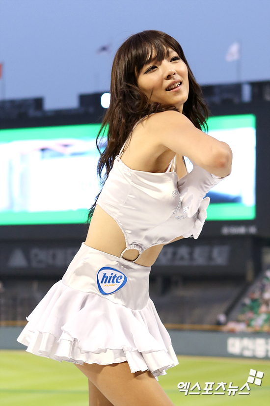 [엑스포츠뉴스=잠실, 권혁재 기자] 1일 오후 잠실야구장에서 열린 '2012 팔도 프로야구' LG 트윈스와 한화 이글스의 경기에서 LG 치어리더 강윤이가 섹시한 안무를 선보이고 있다.
