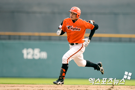 [엑스포츠뉴스=잠실, 권혁재 기자] 2일 오후 잠실구장에서 열린 '2012 팔도 프로야구' LG 트윈스와 한화 이글스의 경기에서 1회초 1아웃 1, 2루 한화 최진행이 좌측 담장을 넘기는 3점 홈런을 때리고 그라운드를 달리고 있다.