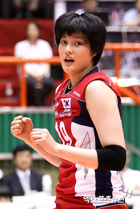 [엑스포츠뉴스=사직실내, 권혁재 기자] 9일 오후 부산 사직실내체육관에서 열린 '2012 그랑프리 세계여자배구대회' C조 예선 대한민국과 터키의 경기에서 득점에 성공한 대한민국 김희진이 환호하고 있다.