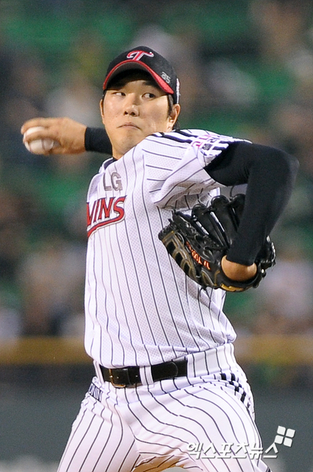 [엑스포츠뉴스=잠실, 권혁재 기자] 13일 오후 잠실야구장에서 열린 '2012 팔도 프로야구' LG 트윈스와 SK 와이번스의 경기에서 LG가 8-4로 앞선 8회초 무사 1, 3루 마운드에 오른 LG 유원상이 힘차게 공을 던지고 있다.