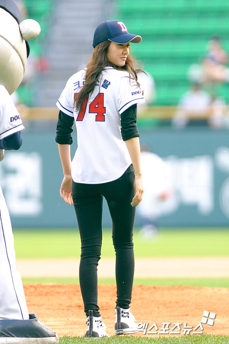 [엑스포츠뉴스=잠실, 권혁재 기자] 19일 오후 잠실구장에서 열린 '2012 팔도 프로야구' 두산 베어스와 넥센 히어로즈의 경기에서 걸그룹 f(x) 멤버 크리스탈이 시구를 위해 그라운드에 입장하고 있다.