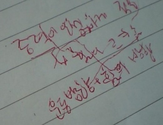 학생은 5교시에 치열한 졸음과의 전쟁을 벌인 듯 '중력이'라고 적혀 있는 내용을 제외하고는 필기를 알아볼 수가 없다.