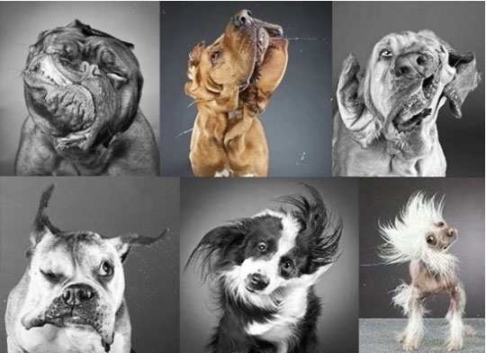 게시물에 공개된 사진은 다양한 종의 개가 몸을 털 때의 순간을 포착한 것으로 개가 몸을 털 때 어떠한 동작과 표정을 취하는지 잘 나타나있다.