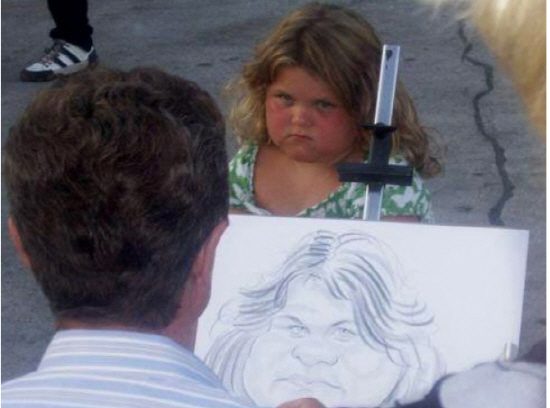 사진에는 한 소녀와 이 소녀의 초상화를 그리는 거리의 화가의 모습이 담겨있다. 다소 오동통한 체형의 이 소녀는 자신의 모습을 조금 과장되게 그리는 화가를 보며 심술이 난 듯 인상을 찌푸리고 있어 웃음을 자아냈다.