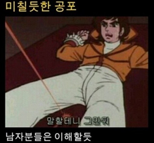 특히 사진 속 레이저는 남자 주인공의 급소 바로 아랫부분을 공격하고 있어 미칠듯한 공포를 충분히 짐작하게 한다.