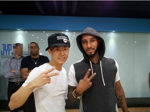 [엑스포츠뉴스=방송연예팀] '2PM' 우영이 미국의 유명 프로듀서 스위즈 비츠(Swizz Beatz)와 찍은 인증샷을 공개했다.
