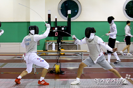 [엑스포츠뉴스=태릉, 권혁재 기자] 27일 오전 서울 노원구 공릉동 태릉선수촌에서 '2012 런던올림픽 D-30 공식 미디어데이' 행사를 마치고 펜싱 국가대표 선수들이 훈련하고 있다.