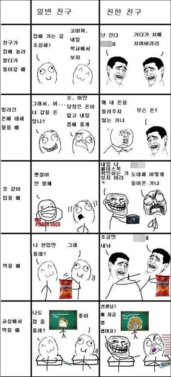 최근 한 온라인 커뮤니티 사이트 게시판에는 '일반 친구 VS 친한 친구'라는 제목의 그림이 게재됐다.