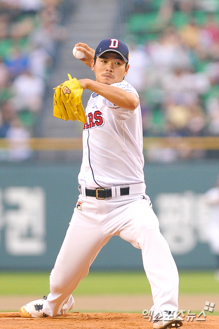 [엑스포츠뉴스=잠실, 권혁재 기자] 29일 오후 잠실구장에서 열린 '2012 팔도 프로야구' 두산 베어스와 롯데 자이언츠의 경기에서 두산 선발투수 노경은이 힘차게 공을 던지고 있다.
