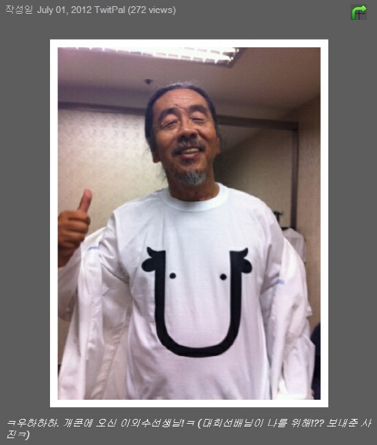 사진에는 작가 이외수가 소 그림이 그려진 티셔츠를 입고 엄지를 치켜들며 온화한 미소를 머금고 있는 모습이 담겨 있다. 이외수가 입고 있는 소 그림의 티셔츠는 박영진의 단벌셔츠로 알려져 팬들의 눈길을 끌었다.
